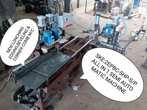 SKE:2EPBCR(4HP) Is A ALL IN 1MACHINE FOR st.glass edge polis,c polish,bevel grinding machine combined with corner rounding and corner making machine with changing proper wheels semiautomatic type.
